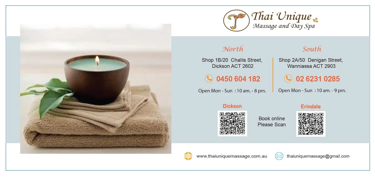 Thai Unique Massage and Day Spa has two locations, located in the heart of Dickson and Erindale, ACT. A massage at Thai Unique is a perfect treat to indulge in relaxation and pampering. Our professional therapists are here to look after you, whether you are seeking total relaxation or deep tissue remedial therapy. We have a range of therapies to suit all. Our therapists specialise in a wide range of wellness therapies and healing rituals to complete a unique massage experience.
